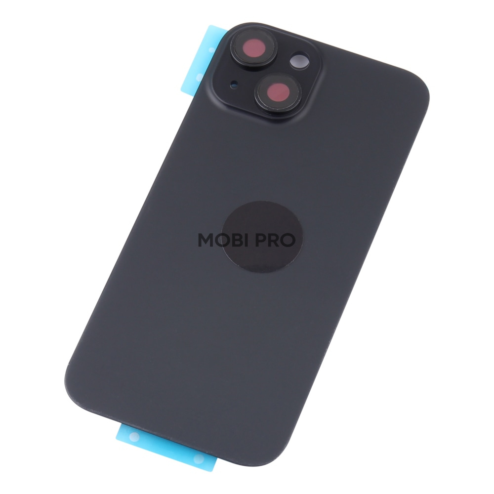 —Задняя крышка для iPhone 15 в сборе со стеклом камеры Черный (стекло, монолит, MagSafe, логотип) - Премиум