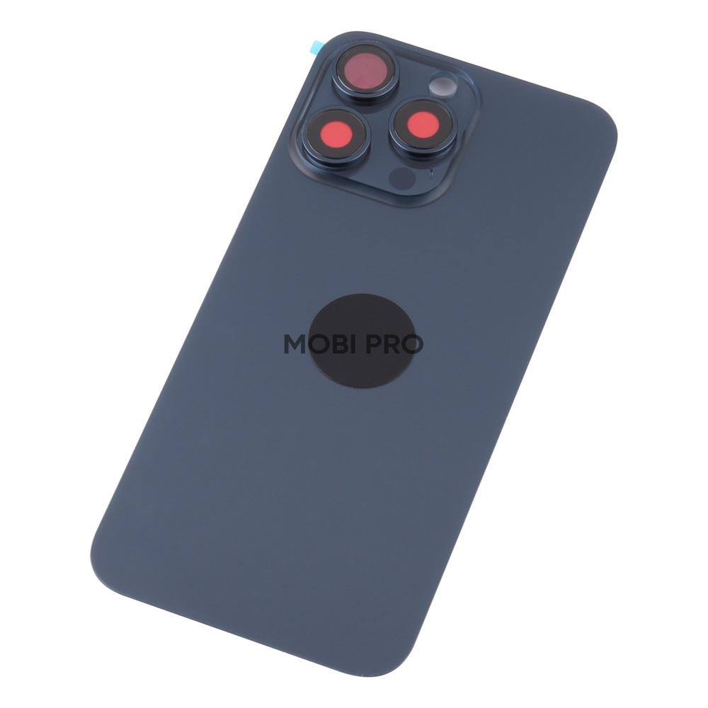 —Задняя крышка для iPhone 15 Pro Max в сборе со стеклом камеры Синий (стекло, монолит, MagSafe, логотип) - Премиум